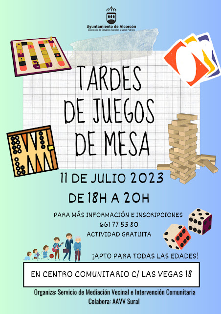 ¡El próximo martes 11 de julio te invitamos a una tarde de Juegos de mesa!